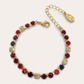 Op zoek naar een armband die meteen in het oog springt? Deze verfijnde 24k gold plated armband met 22 Swarovski-kristallen in rood, zwart en goud is een subtiel statement om je pols. Elegant, krachtig en moeiteloos te combineren met zowel chique als casual outfits.