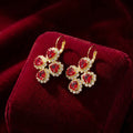 Luxe gouden oorhangers met klavertje vier van rode Swarovski hartjes