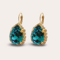 Deze prachtige oorhangers met een grote, groenblauwe druppel van Swarovski zijn meer dan een accessoire: ze zijn een statement van elegantie. Het kristal wordt omringd door kleine gouden Swarovski-kristalletjes die zorgen voor een verfijnde schittering.