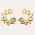 Deze goudkleurige oorknoppen met halvemaanvorm zijn subtiel versierd met fijne blaadjes, wat zorgt voor een elegant en toch krachtig statement.
