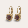 Bordeaux Swarovski oorhangers met gouden kristalrand – krachtig & verfijnd