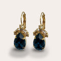 Oorhangers met gouden blaadjes en donkerblauwe Swarovki-druppel
