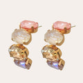 These hoop earrings (studs) with 3 Swarovski crystals in fuchsia (neon pink), gold and off-white, are made with gold-plated (24 carat) materials with an extra protective layer over the gold. Chic, elegant and wonderfully light and summery due to the bright pink color The length of these earrings is 3.1 cm. They are also available (if available) with: And they come with a matching ring: Statement ring with fuchsia Swarovski crystals and with a matching bracelet: Gold bracelet with pink/orange Swarovski crystals